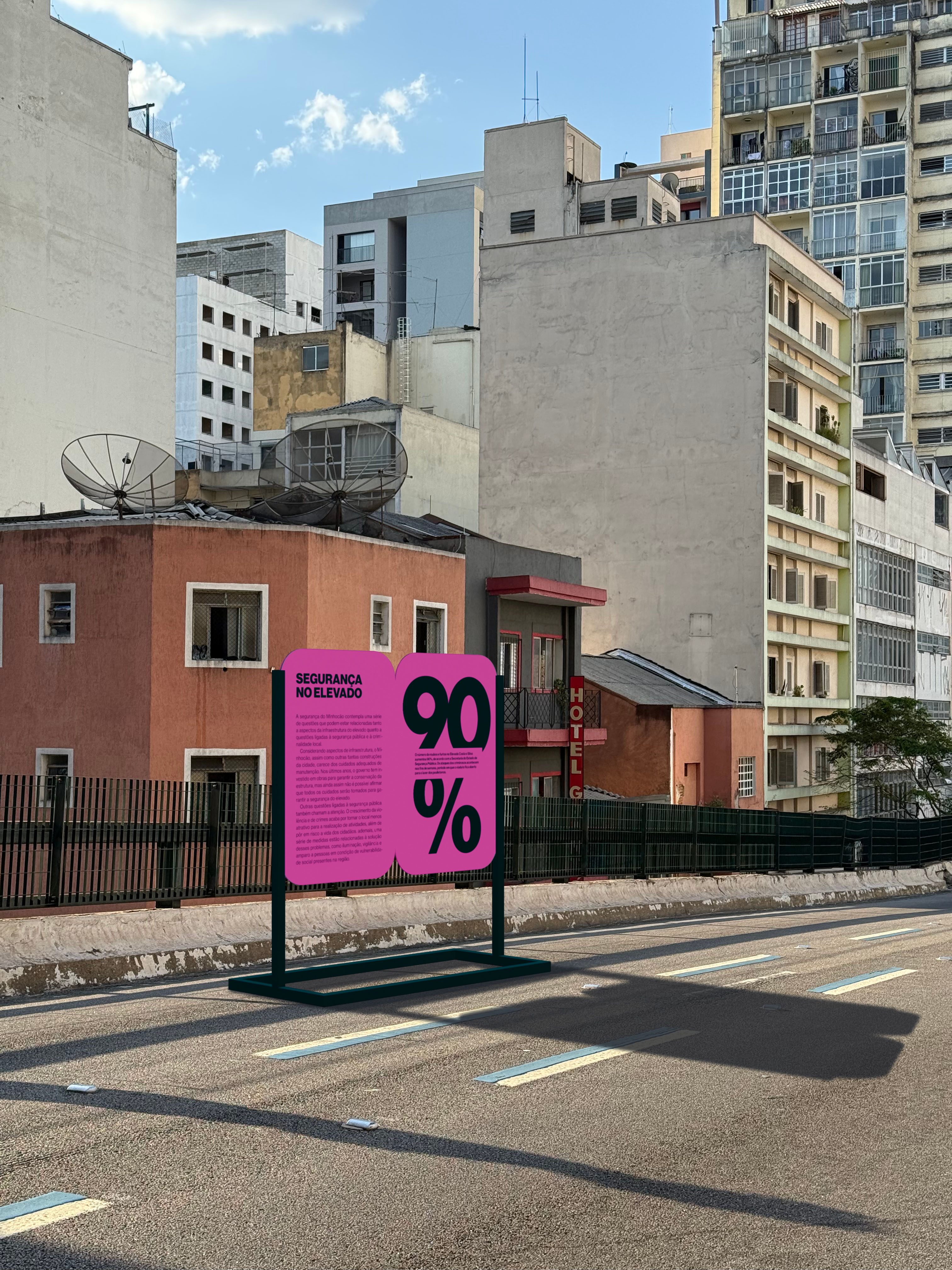 O projeto propunha criar uma sinalização para o Elevado Presidente João Goulart. Escolhemos abordar os impactos do elevado para moradores e visitantes, desenvolvendo placas que ilustram e explicam nove problemas recorrentes do espaço urbano.