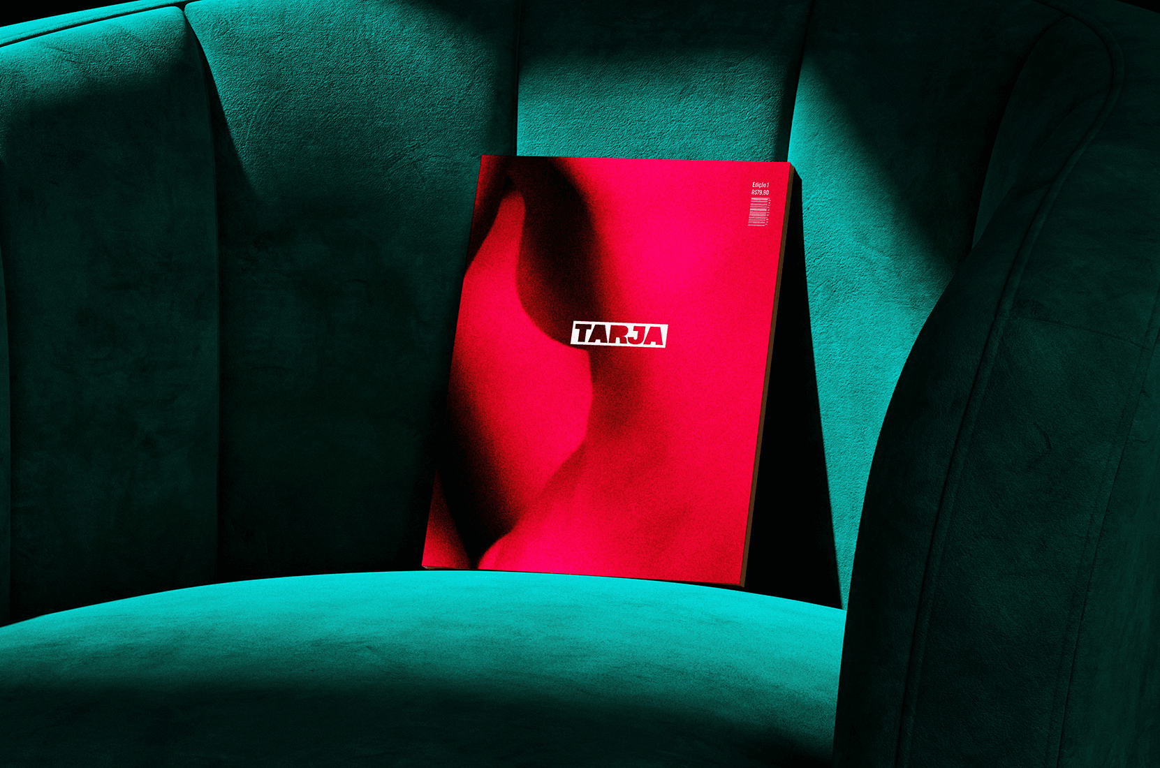 O logo da TARJA incorpora uma faixa vazada que atravessa a palavra, criando um efeito simultâneo de censura e revelação. Essa abertura permite que imagens se misturem ao lettering, conectando a marca ao conteúdo visual da revista. A tipografia densa e o espaçamento reduzido reforçam o peso e a tensão que definem o tema da publicação.